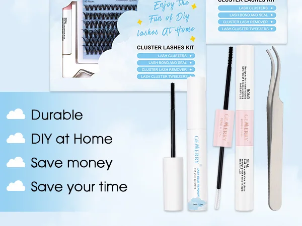 Gemerry 240Pcs DIY Eyelash Extension Kit With 2in1 Lash Bond&Seal And Lash Glue Remover Tweezer Individual Cluster Lashes Tools